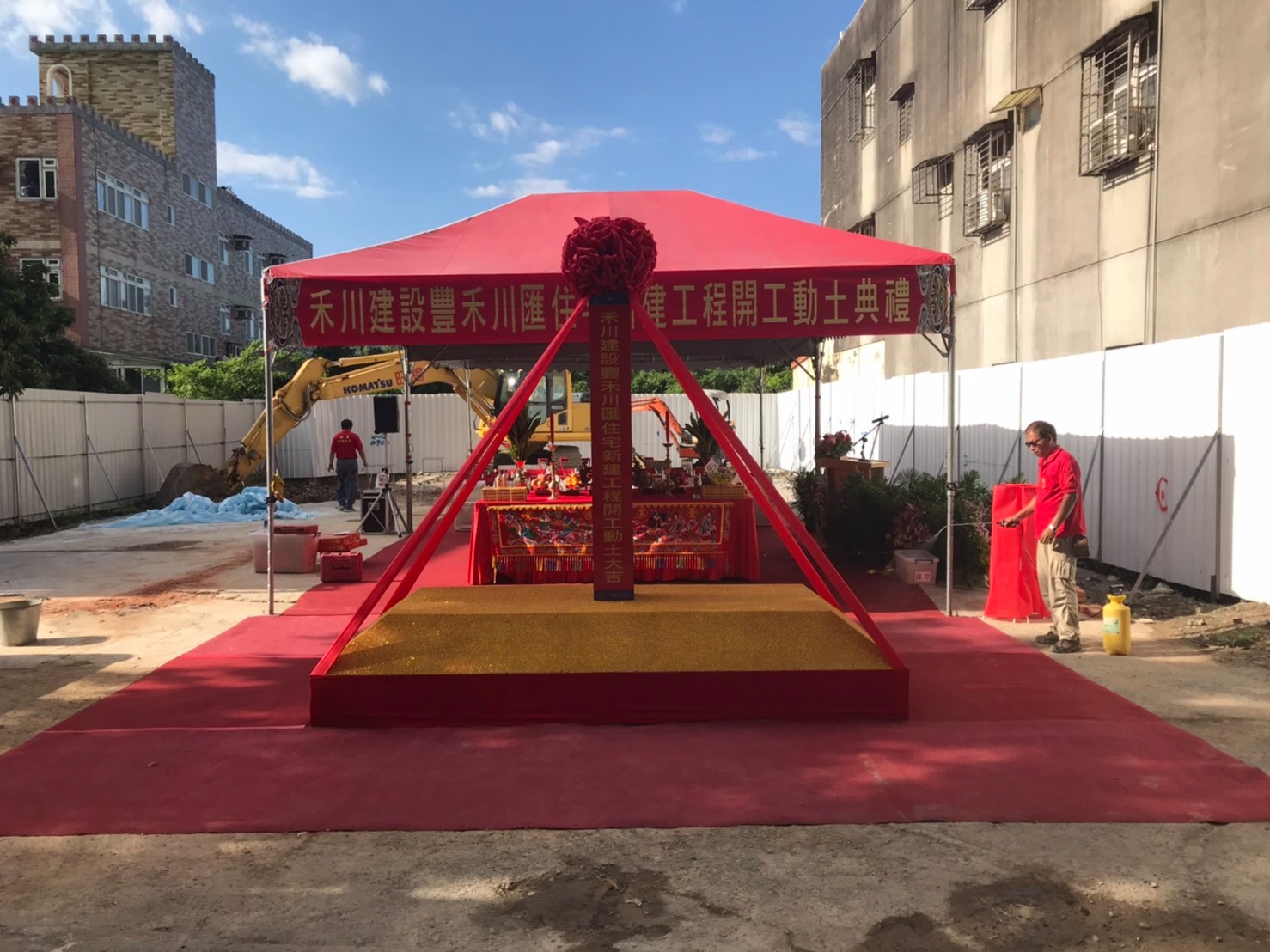 今天風和日麗,開工典禮盛大舉行,祈願新工程未來一切順利圓滿